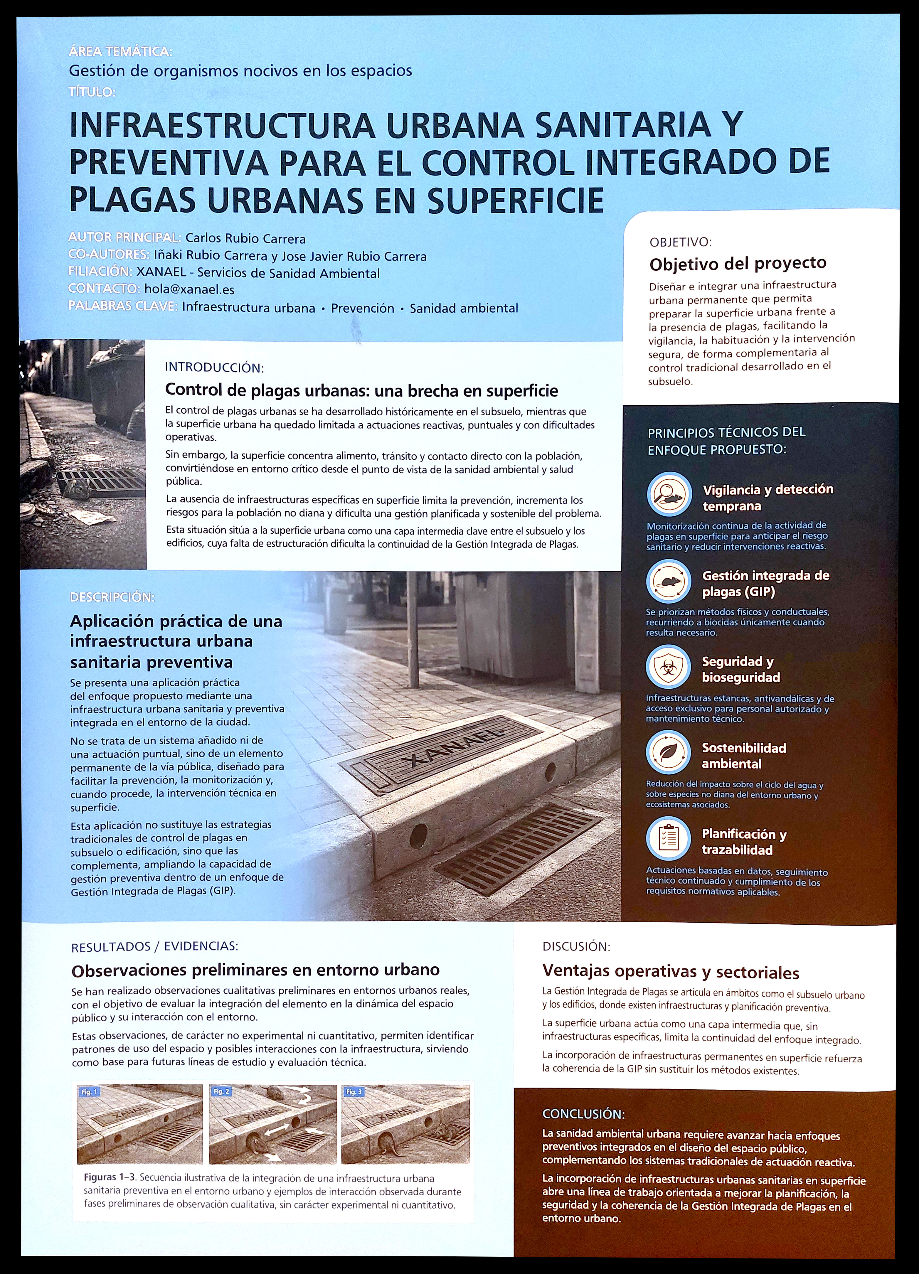 Figura 9. PÓSTER 8 – ‘Infraestructura urbana sanitaria y preventiva para el control integrado de plagas urbanas en superficie’, por Carlos RUBIO CARRERA, Iñaki RUBIO CARRERA & José Javier RUBIO CARRERA.