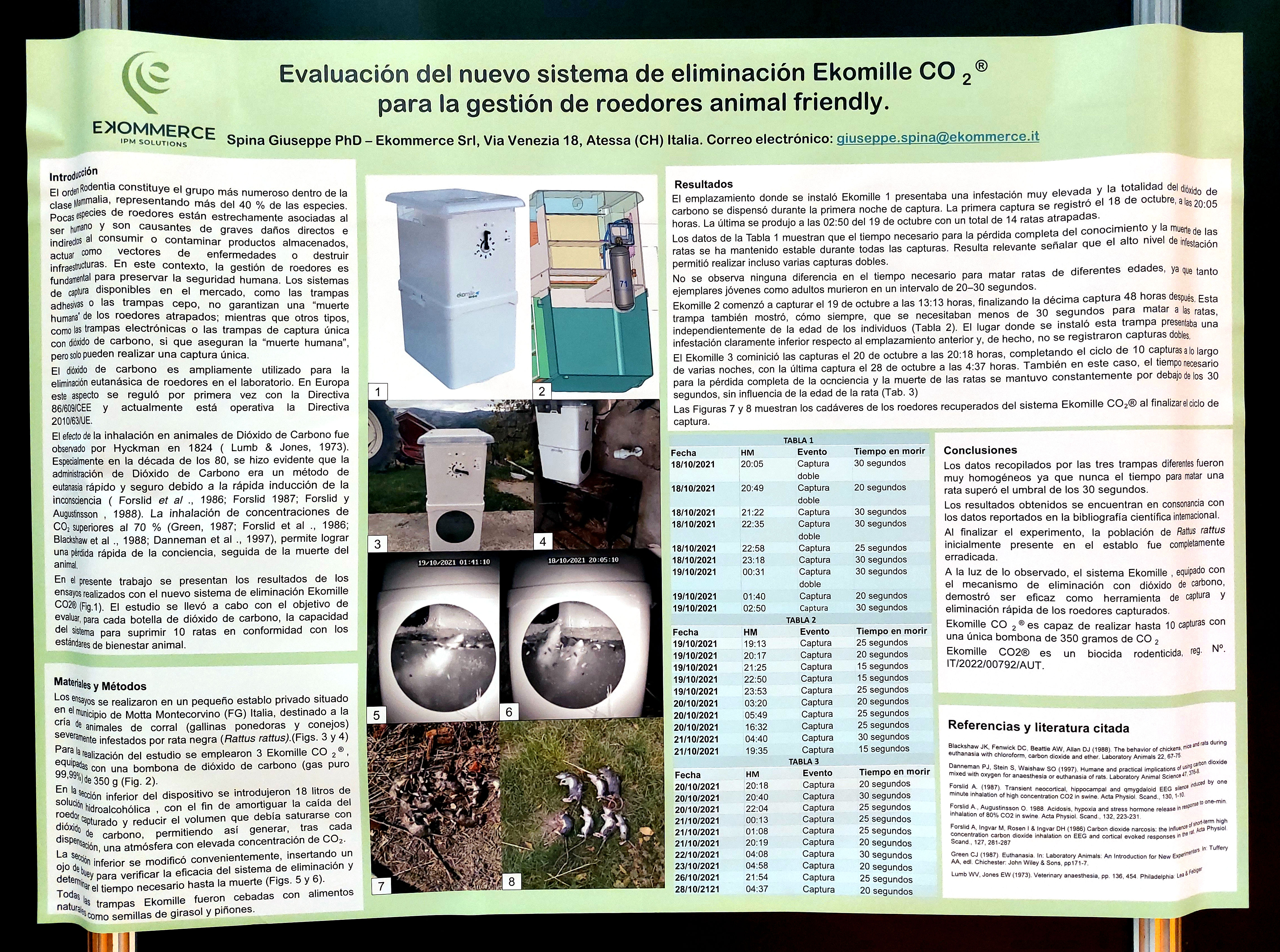 Figura 10. PÓSTER 9 – ‘Evaluación del nuevo sistema de eliminación Ekomille CO2 para la gestión de roedores animal friendly’, por Giuseppe SPINA.