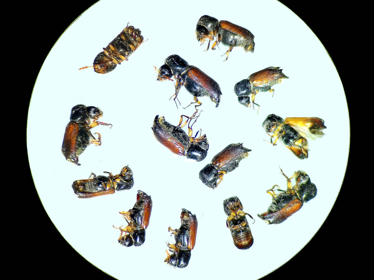 A principios de marzo, en un edificio de Barcelona, aparecieron unos coleópteros en una sala junto a las ventanas. Por las características del edificio, las ventanas no se pueden abrir. De inicio, los identificamos como bostríquidos. Y cuando los tuvimos bajo la lupa binocular, vimos que se trataba de individuos de Xylopertha praeusta (figuras 1 y 2) [1]. Me pareció raro que aparecieran tan pronto y en interiores. En un caso que tuve en 2024, aparecieron en el mes de junio en un leñero [2]. La leña era de encina (Quercus) y había sido cortada el año anterior. Esta salida temprana pudiera explicarse porque el edificio están muy bien climatizado, manteniendo una temperatura constante.