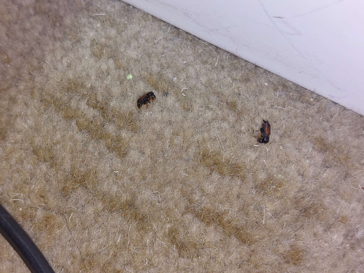 Identificado el origen, hemos indicado al cliente que se retiraran. Al preguntarle sobre los árboles decorativos, nos ha explicado que hace dos meses que fueron colocados en el pasillo. La preocupación por la aparición de nuevos adultos ha quedado clara. Si se retiran los árboles, no aparecerán más. Y para los que queden en la sala, la recomendación es retirada mecánica con un aspirador, especialmente junto a las ventanas. Es probable que el fabricante de los árboles haya repartido unidades en otros clientes. Y cabe la posibilidad que hayan tenido salida de adultos. Del caso de 2024 he podido deducir que en leñeros, Xylopertha praeusta permanece varios años hasta consumir la madera.