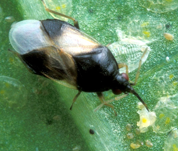 Las chinches verdaderas pertenecen al suborden Heteroptera (Hemiptera). Tienen una aparato bucal perforador y succionador con el cual extraen de las plantas sus jugos para alimentarse. También los hay que utilizan este aparato para alimentarse de la hemolinfa de otros insectos. Un caso especial son las chinches que se alimentan de sangre de mamíferos y aves como es el caso de los cimícidos (Cimicidae) y algunos redúvidos (Reduviidae). Existen especies que pueden ocasionar molestias en las personas de manera ocasional como por ejemplo Orius insidiosus (Anthocoridae). El adulto tiene una longitud de entre 2 y 5 milímetros. Son depredadores de otros insectos. Se alimentan de áracos y trips, y son por ello utilizados en control biológico contra especies perjudiciales para los cultivos.  Son comunes en parques y jardines. Y pueden ocasionar picaduras dolorosas en las personas, aunque no es venenosa.