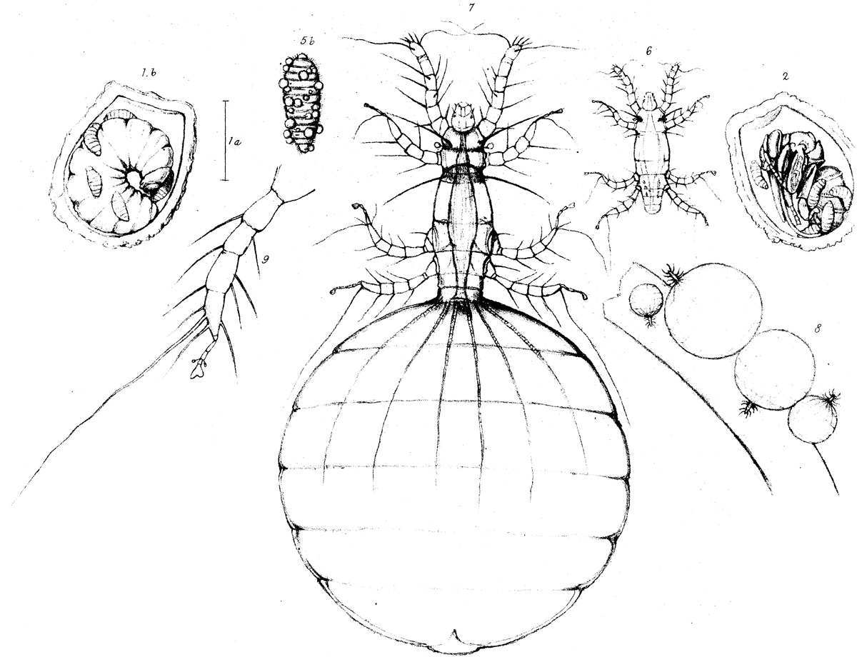 Pyemotes ventricosus, publicado en ‘Anthophora retusa’, Inglaterra, 1853.