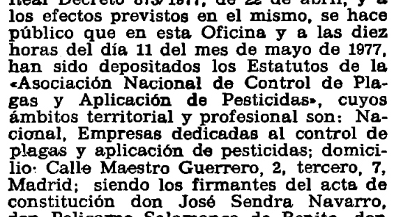 Carlos Pradera, Barcelona, 05-12-2023 En el año 2016 dediqué una entrada a las asociaciones del sector de control de plagas en España [1]. Di unas pinceladas sobre su historia, básicamente cuándo había aparecido cada una para establecer una cronología. También listé las asociaciones que han existido desde que fueran constituidas las primeras tras la Dictadura. … Sigue leyendo Más sobre las asociaciones del sector de control de plagas en España