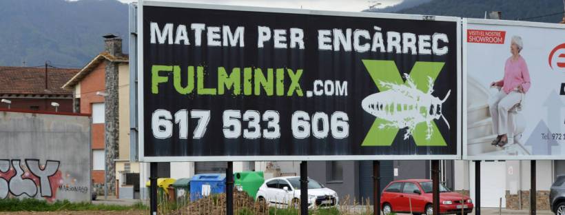 C. Pradera, Barcelona, 28-02-2020 El pasado mes de noviembre de 2019 tuve la oportunidad de fotografiar dos carteles publicitarios de sendas empresas de control de plagas. Por un lado, en les Preses, población cercana a Olot, encontré una valla publicitaria de la empresa Fulminix con sede en Quart (Girona). Un cartel de diseño simple anunciaba … Sigue leyendo Dos ejemplos opuestos de publicidad de empresas de control de plagas