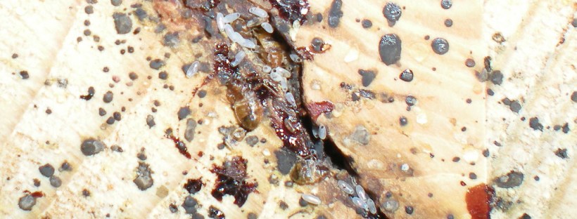 C. Pradera, Barcelona, 07-10-2012 Una hembra de chinche de cama (Cimex lectularius) puede poner entre 100 y 200 huevos a razón de 4 o 5 huevos por día. La cantidad dependerá de las condiciones ambientales. Por debajo de los 10ºC, dejan de poner huevos [1]. Para proliferar la chinche necesita un lugar cálido y seco. … Sigue leyendo Huevos de chinche de cama (Cimex lectularius)