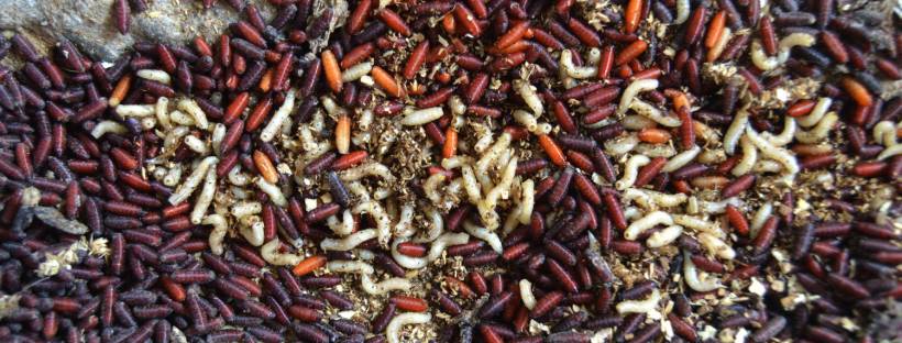 Insectos sobre una boñiga fresca de vaca a 1.900 metros de altitud