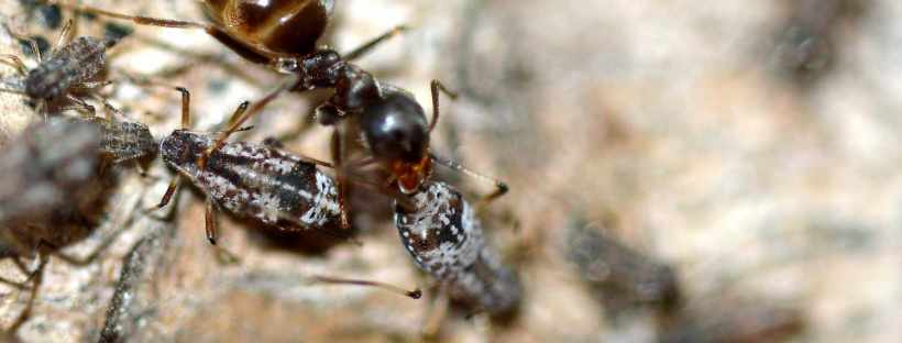 Pulgón Cinara acutirostris (Hemiptera, Aphididae) y hormiga Lasius grandis (Hymenoptera, Formicidae) sobre Pinus