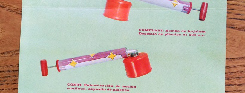 Carlos Pradera, Barcelona, 11-04-2017 He encontrado un documento impagable que reproduzco en esta entrada. Se trata de un sencillo catálogo de pulverizadores para insecticidas domésticos de la casa Metalgrabados Murcia SL. El documento está compuesto por dos hojas. La primera es a color y contiene los modelos en el anverso (figura 1) y los precios … Sigue leyendo Pulverizadores de Metalgrabados Murcia SL