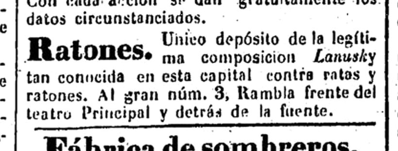 C. Pradera, Barcelona, 06-01-2019 Hasta hace unos días, creía que el producto raticida más antiguo comercializado en España fue la pasta fosfórea de L. Steiner. Este producto parece que fue inventado por un farmacéutico francés de Estrasburgo en 1846. Sin embargo, el documento más antiguo de su uso en España es un anuncio publicado en … Sigue leyendo No más ratas y ratones con la composición fosfórica de Lanusky (1851)
