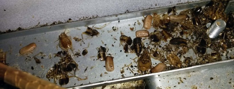 Evidencias de una gran infestación de cucaracha de cocina (Blattella germanica)