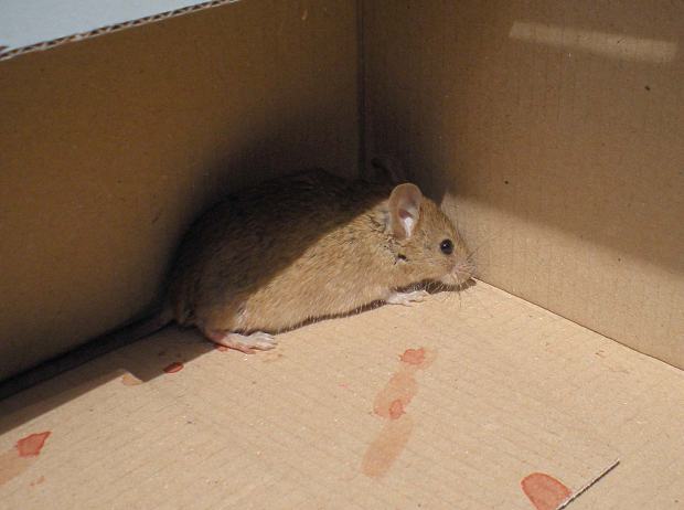 Fig 128. Ratón doméstico (Mus musculus) afectado por el raticida./ C. Pradera 2014