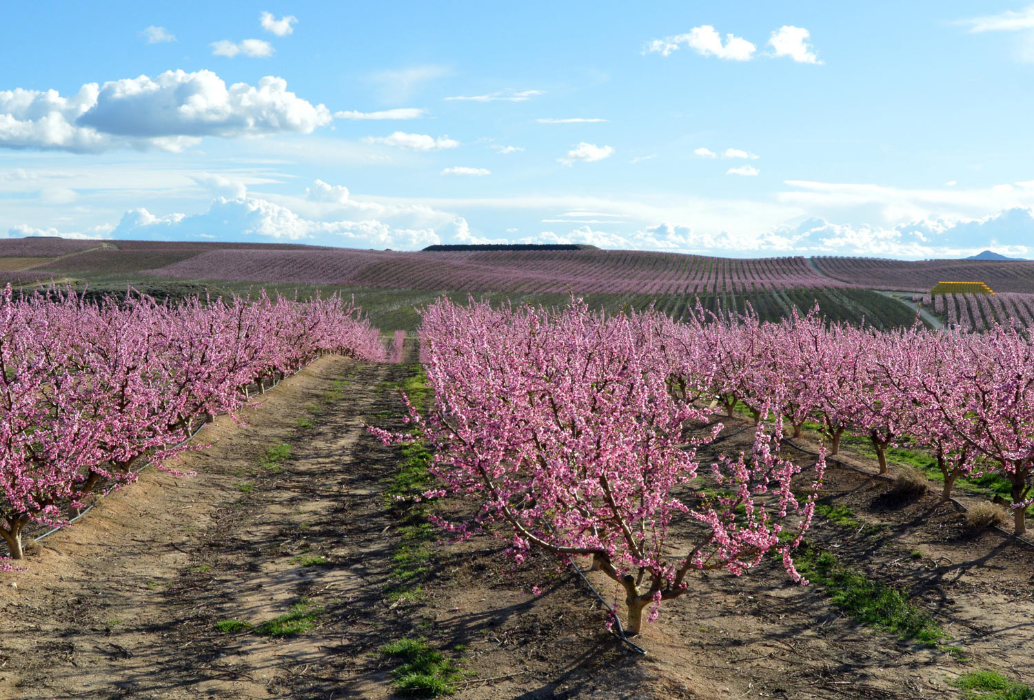 Fig 10. El monocultivo de melocotoneros en Aitona deja unas preciosas estampas en marzo./ C. Pradera 04-2018