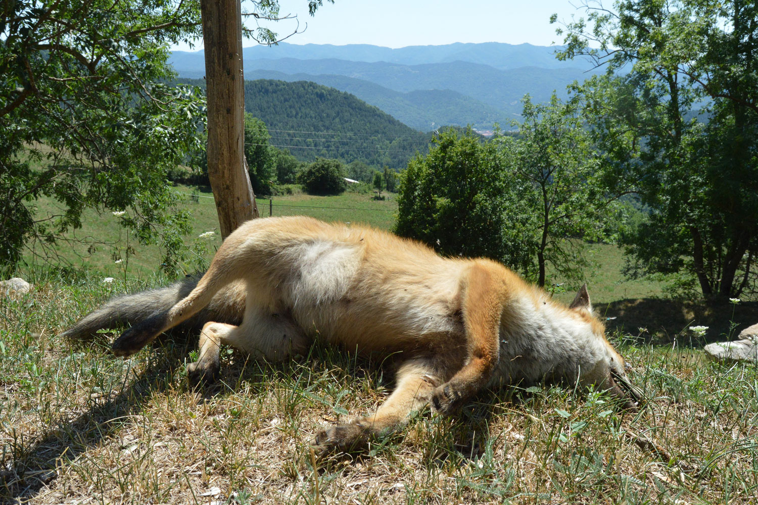 Fig 22. Zorro (Vulpes vulpes) en estado de putrefacción en Camprodón./ C. Pradera 08-2019