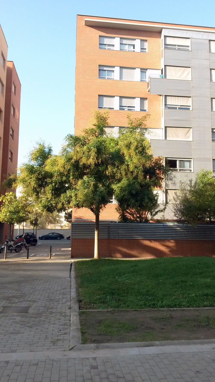 – Vegetación alrededor del edificio: edificio rodeado de setos, presencia de hiedras o plantas que crezcan sobre fachadas, árboles que tocan a la fachada.