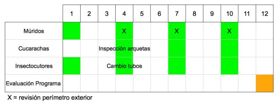 Evaluación continua o de seguimiento. Después de cada tratamiento o inspección, deberemos realizar una valoración de la aplicación de las medidas de control. El Programa de Actuación puede requerir pequeños ajustes como un aumento de la frecuencia de visitas, un aumento de puntos de control, el cambio de un producto, etc.