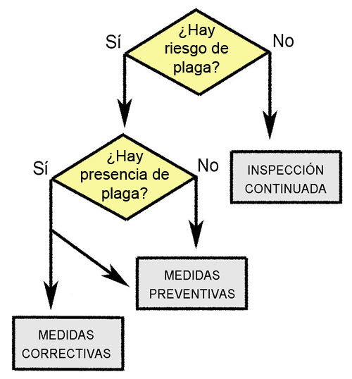El Control Integrado se hace uso de todas las herramientas disponibles para gestionar las plagas promoviendo en primer lugar la prevención mediante medidas preventivas. Se promueve la modificación de los hábitos de las personas (medidas culturales), el saneamiento del medio (medidas higiénicas), la correcta temperatura y humedad (medidas ambientales), y el arreglo de los edificios (medidas estructurales). En segundo lugar, si el organismo nocivo está presente, se llevan a cabo medidas correctivas. Primero se llevan a cabo medidas mecánicas y físicas. Y luego las medidas biológicas y químicas. En le caso de realizar un control químico, se utilizarán los menos tóxicos y dirigidos a la especie diana, con la técnica adecuada y en la cantidad justa. Este modo de actuar queda reflejado en la pirámide de medidas de CIP (figura 2).