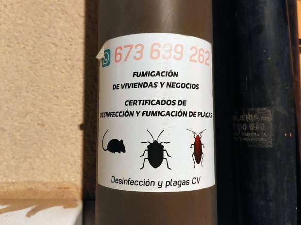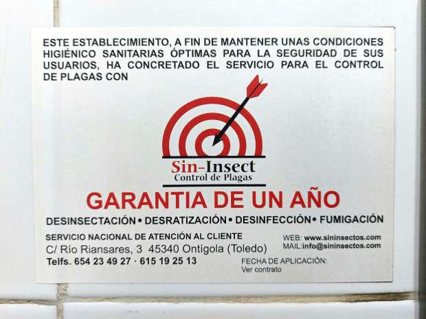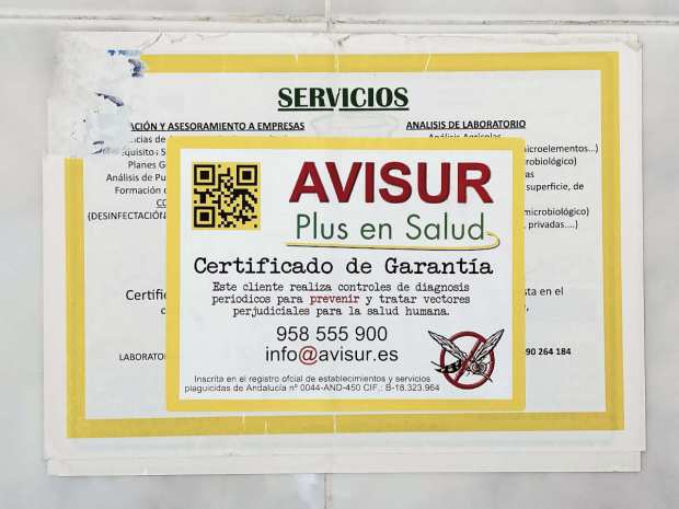 Recorrido visual a través de carteles, documentación y locales de empresas de control de plagas.