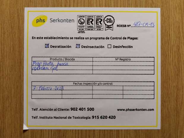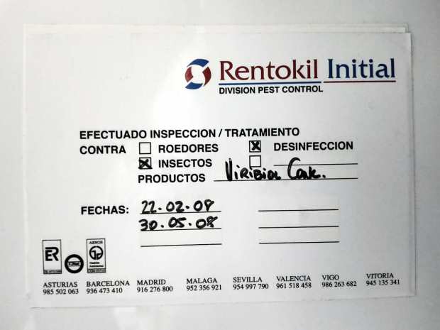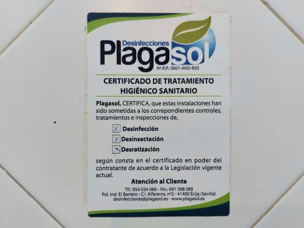 Fig 33. Certificado de pared de Europa Control Ecológico de Plagas, Tenerife./ C. Pradera 07-2021