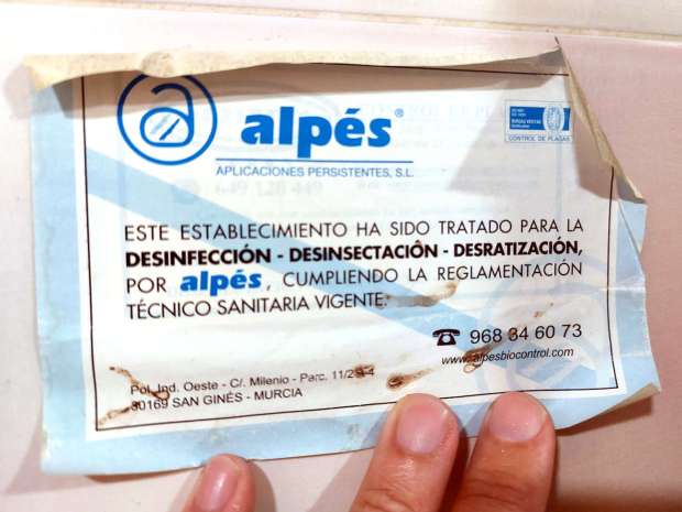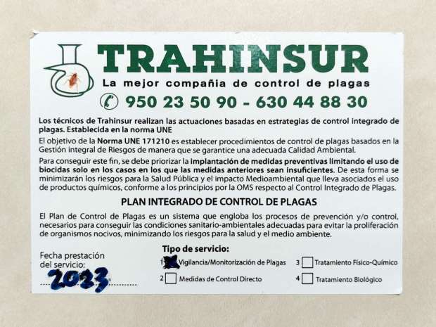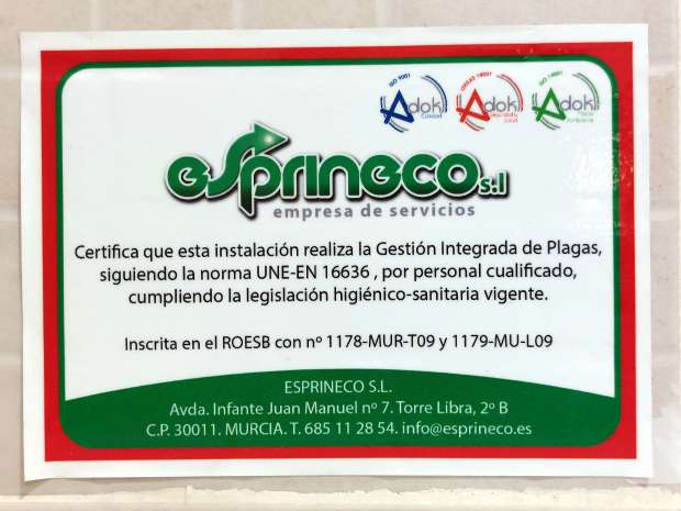 Fig 120. Certificado de pared de Martínez Control de Plagas en Molina de Segura, Murcia./ C. Pradera 02-2024