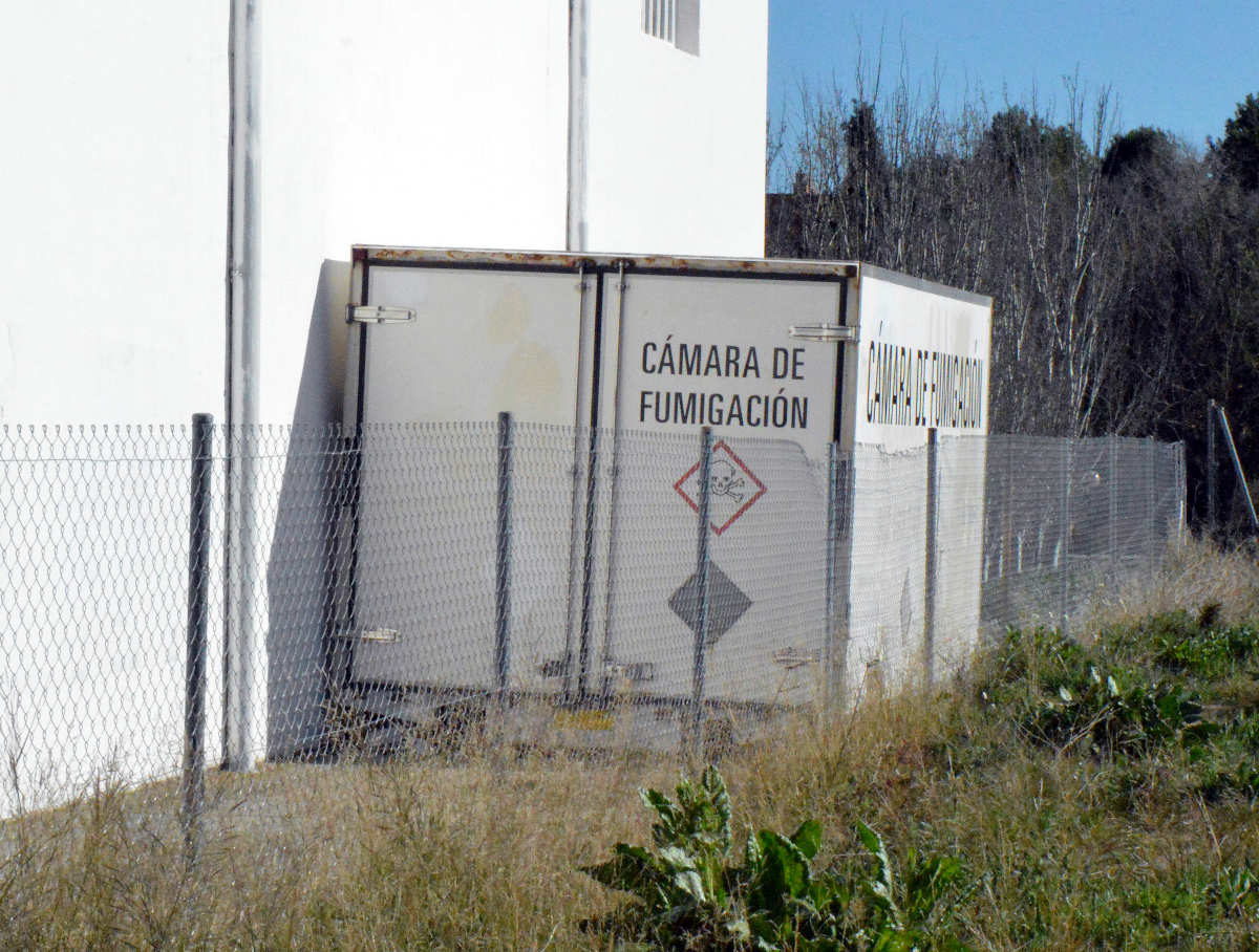 Fig 38. Cámara de fumigación junto a nave industrial de Ambien Sinbichos, Huesca./ C. Pradera 2016