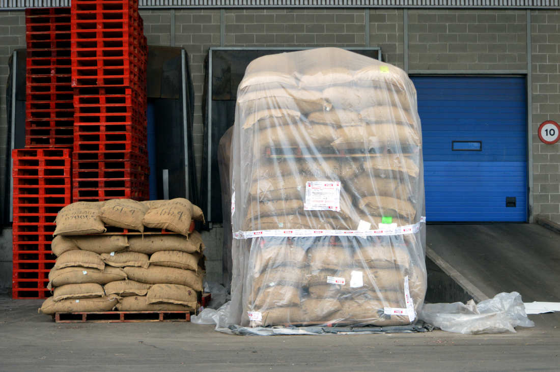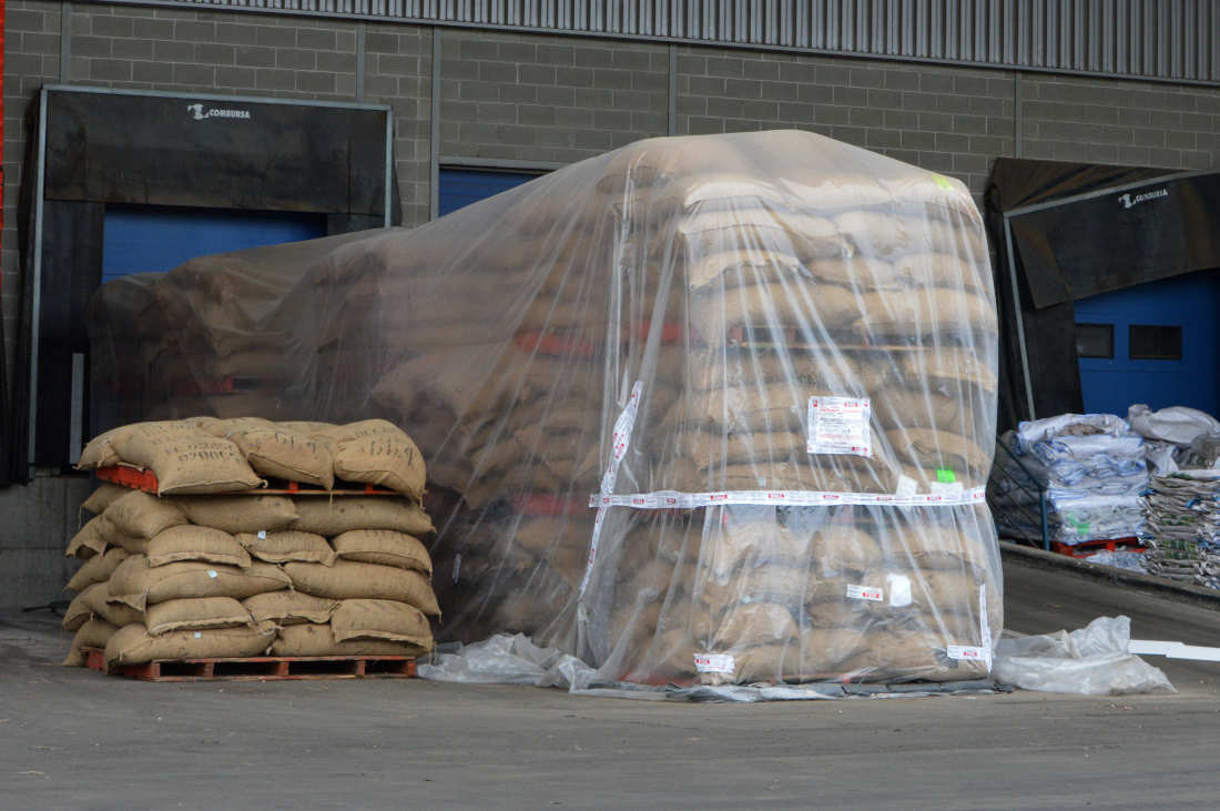 Fig 12. Fumigación con fosfina de una estiba de cacao en Zona Franca de Barcelona./ C. Pradera 2018