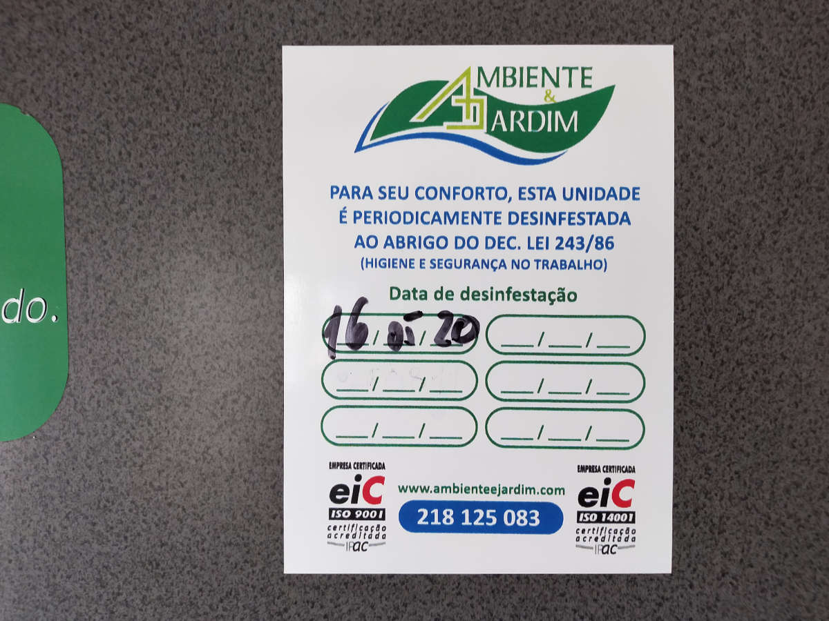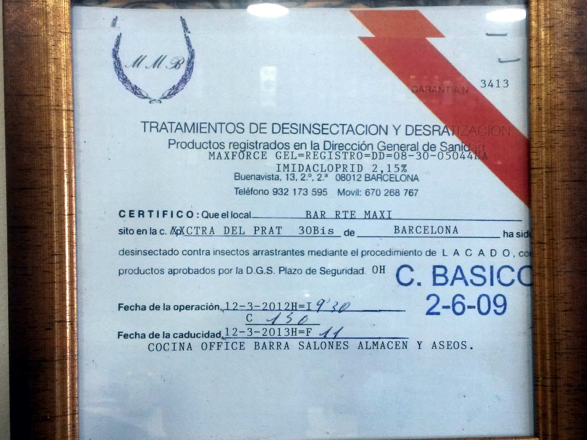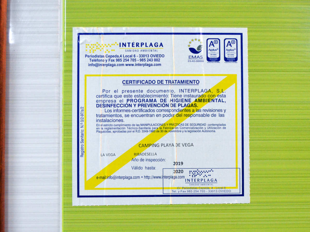 Fig 33. Certificado de pared de Europa Control Ecológico de Plagas, Tenerife./ C. Pradera 07-2021