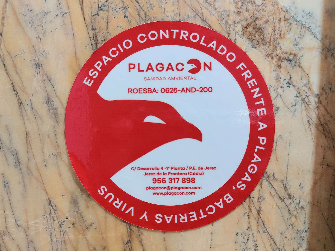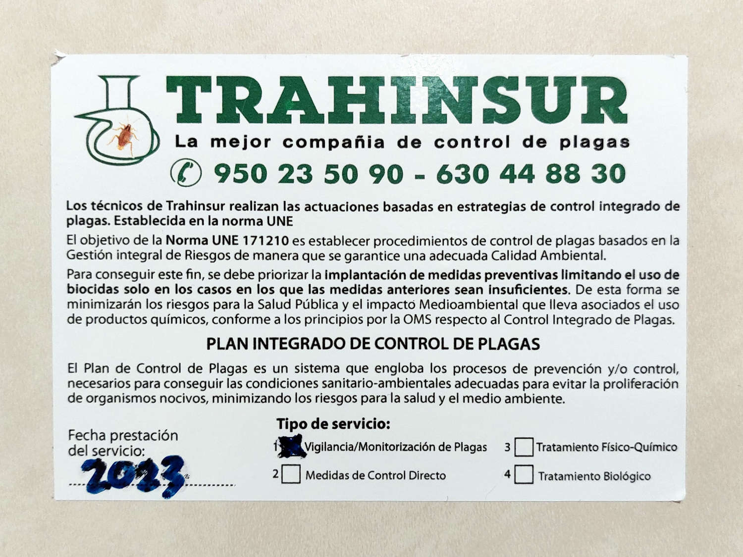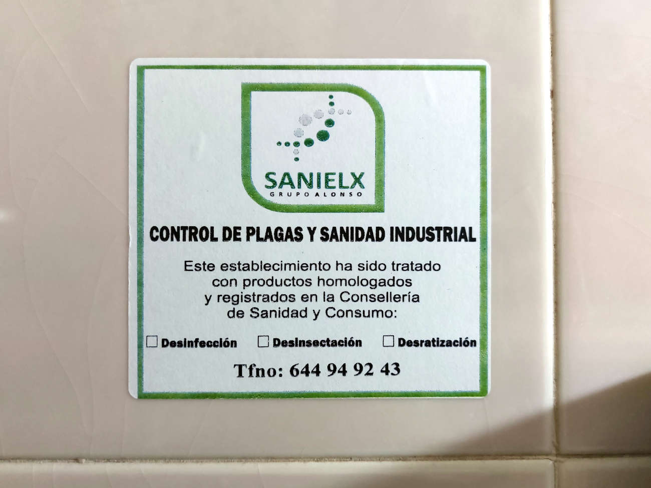 Fig 33. Certificado de pared de Europa Control Ecológico de Plagas, Tenerife./ C. Pradera 07-2021