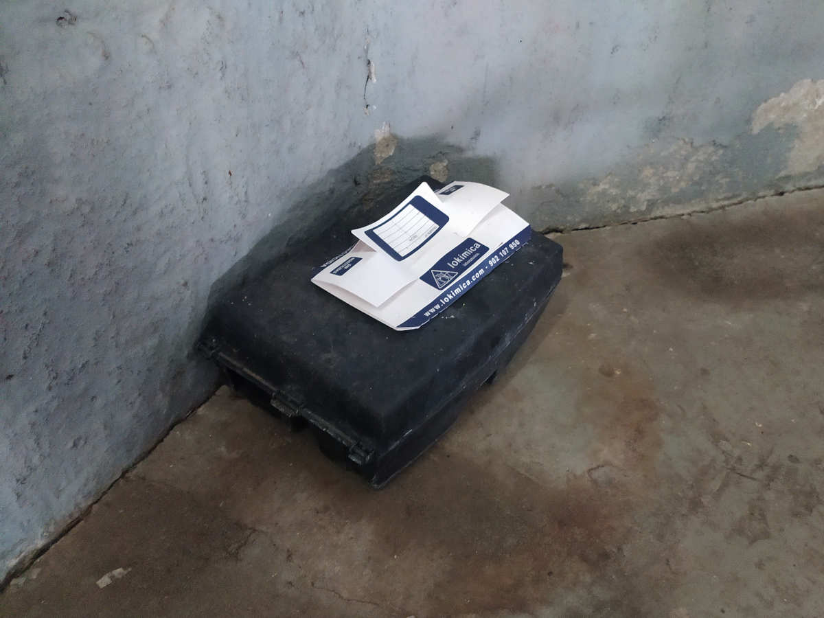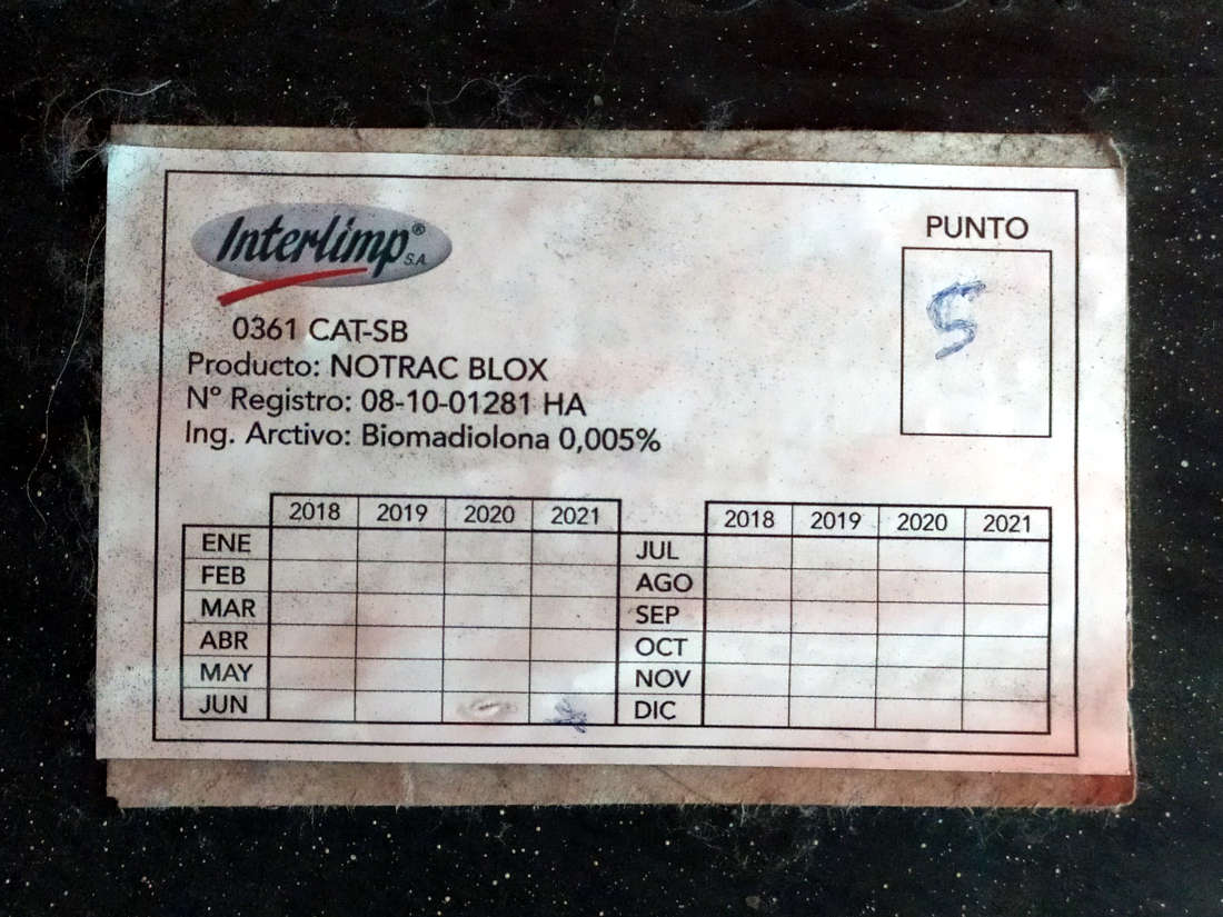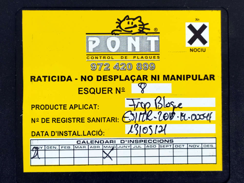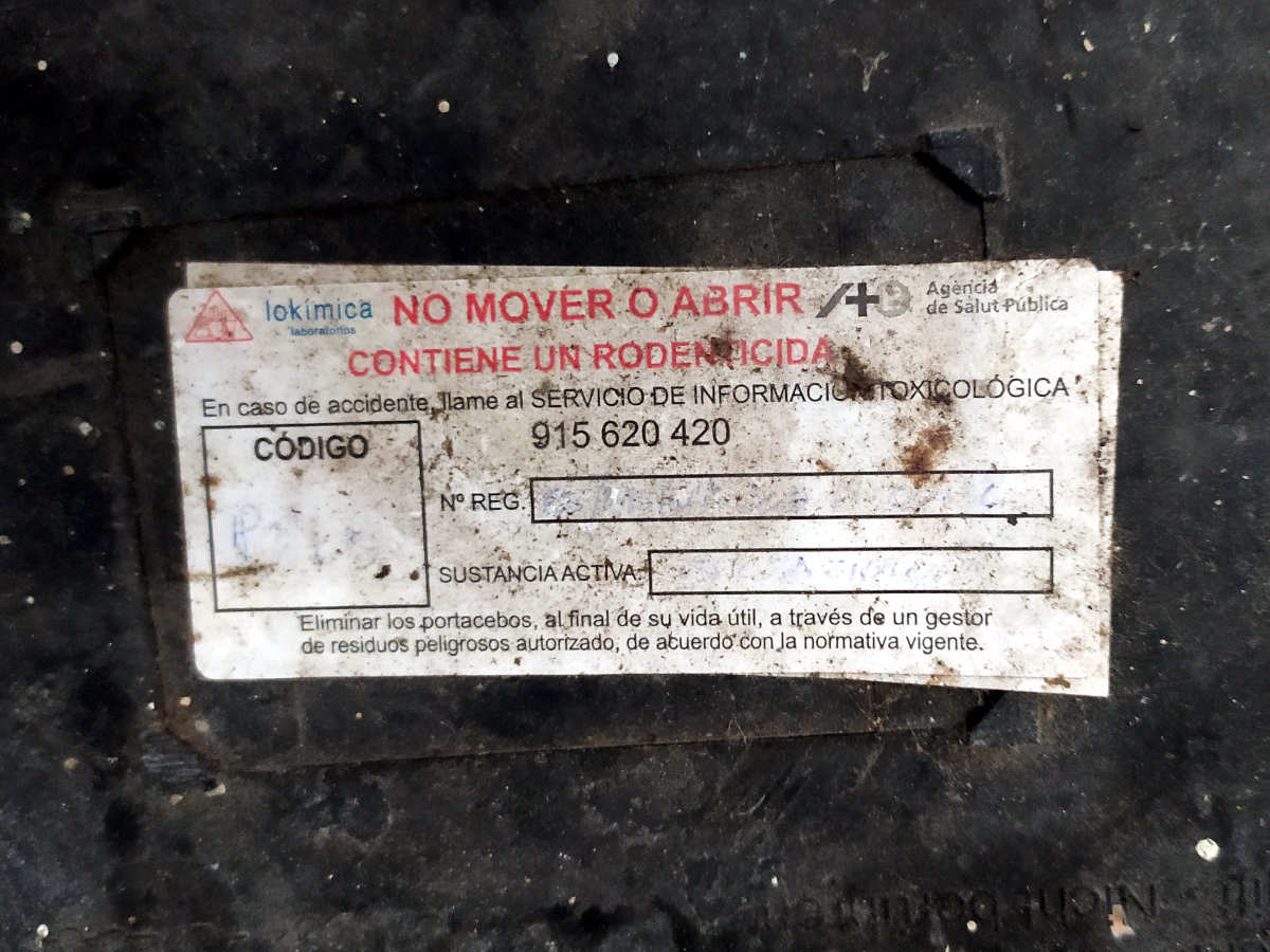Fig 76. Portacebos y raticida antiguo de Tractaments Verdaguer (TRAVER) en Vic./ C. Pradera 02-2019
