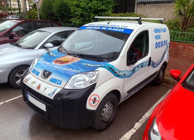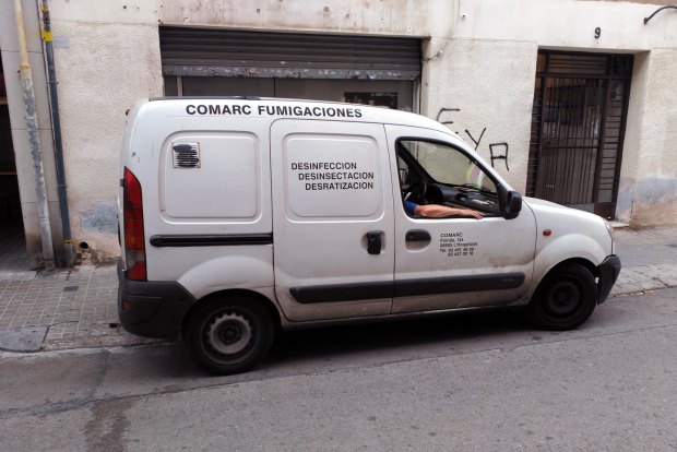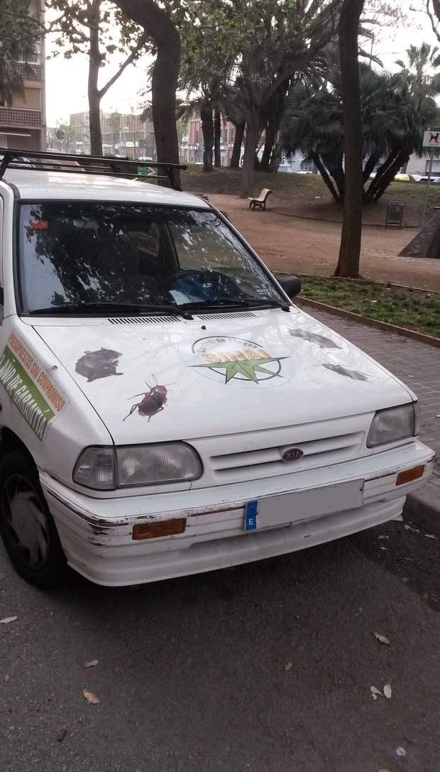 Me encanta encontrar un vehículo de control de plagas. Y me gusta poder tomar una fotografía. Lo hago con disimulo y mirando que el conductor no esté cerca. No sé si comprendería bien que alguien esté tomando una fotografía a su vehículo. En Barcelona, cuando alguien te toma una fotografía es para poner una denuncia. Así que intento no entretenerme.