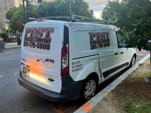 Fig 476. Vehículo de J.P. McHale Pest Management en la ciudad de Nueva York./ Raúl López 08-2023