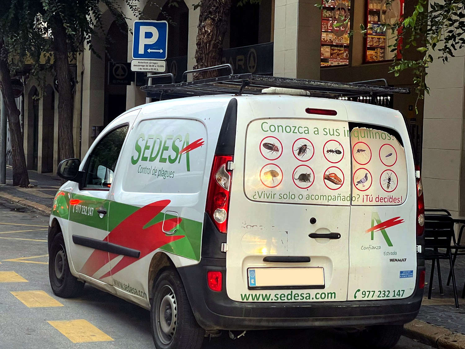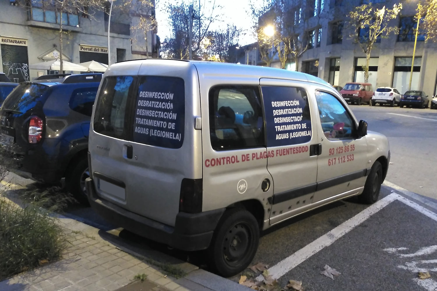 Me encanta encontrar un vehículo de control de plagas. Y me gusta poder tomar una fotografía. Lo hago con disimulo y mirando que el conductor no esté cerca. No sé si comprendería bien que alguien esté tomando una fotografía a su vehículo. En Barcelona, cuando alguien te toma una fotografía es para poner una denuncia. Así que intento no entretenerme.